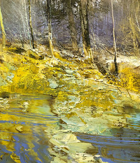 A plein air landscape painter from West Virginia, Lynn Boggess braves the weather of all seasons, armed with canvases and cement trowels for brushes, to capture the beauty of nature in his unique landscapes. He received his bachelor’s in fine art from Fairmont State University, and went on to complete his master’s at the Cranbrook Academy of Art. For more than 10 years, Lynn taught painting at Fairmont State University while also continuing his career as a painter. He has received numerous prestigious awards, including a Lifetime Achievement Award at the West Virginia Governor’s Awards and the 2001 West Virginia Higher Education Art Educator of the Year. Lynn continues to live and work in West Virginia.