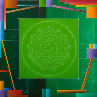Richard Carter’s 50-year career has been guided by intense curiosity, a drive to master his craft and intriguing themes that captivate him and ultimately define his bodies of work. Carter’s unique interpretation of modernist painting and design was broadened by the early years he spent as Herbert Bayer’s studio assistant. His creativity has typically (though not always) come to life through unique geometric abstractions centered on fully developed concepts and philosophies.